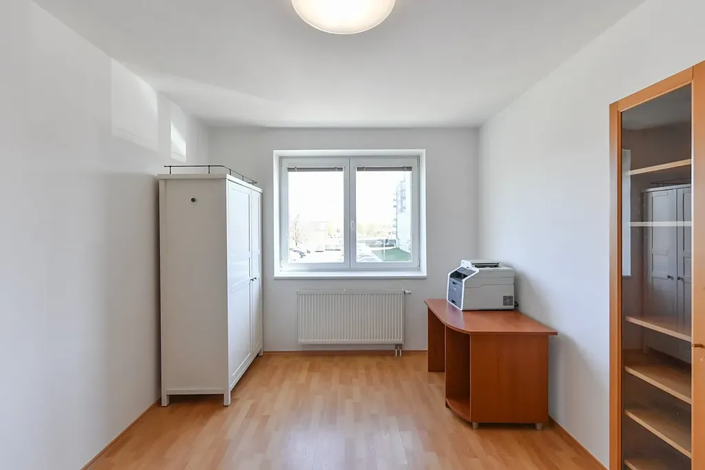 K bytu náleží nadstandardně velký zděný sklep (6 m²). Možnost dokoupení garážového stání v zabezpečeném parkovacím domě za 500 000 Kč.