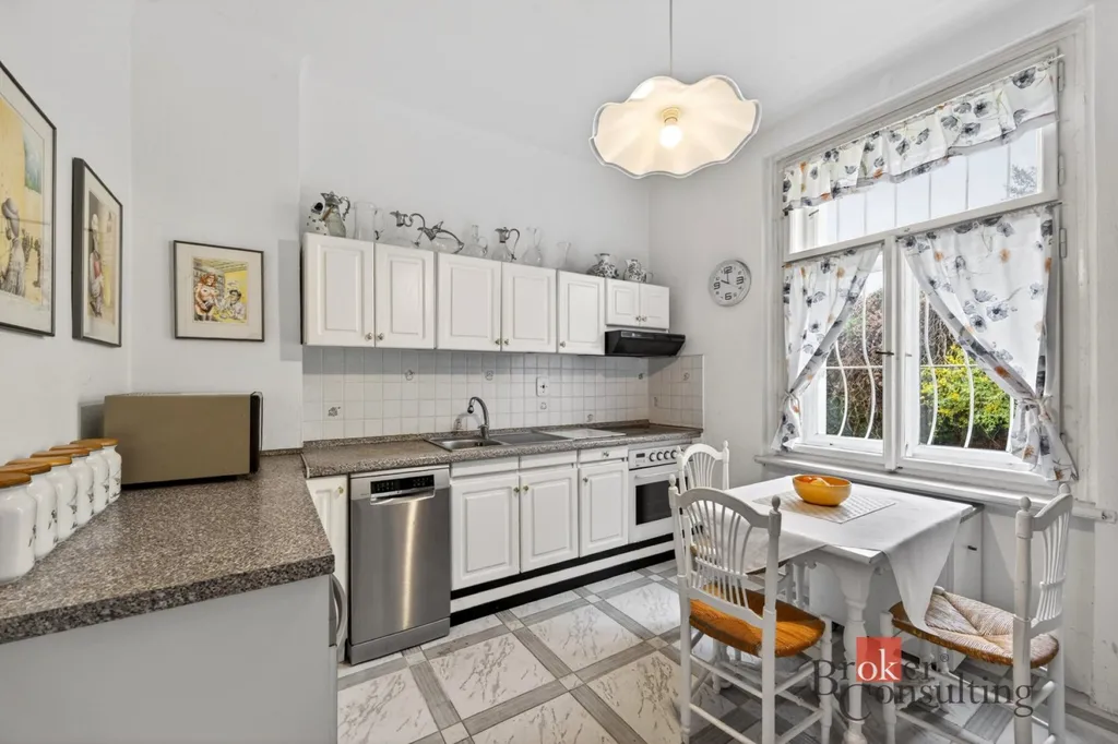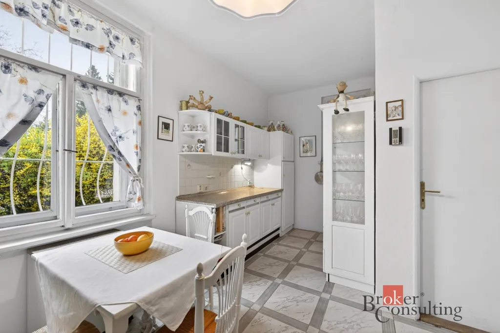 Nabízíme prvorepublikovou vilu v Černošicích s užitnou plochou cca 283 m² na pozemku o velikosti 1 591 m², situovanou v klidné starší zástavbě mimo záplavovou oblast.