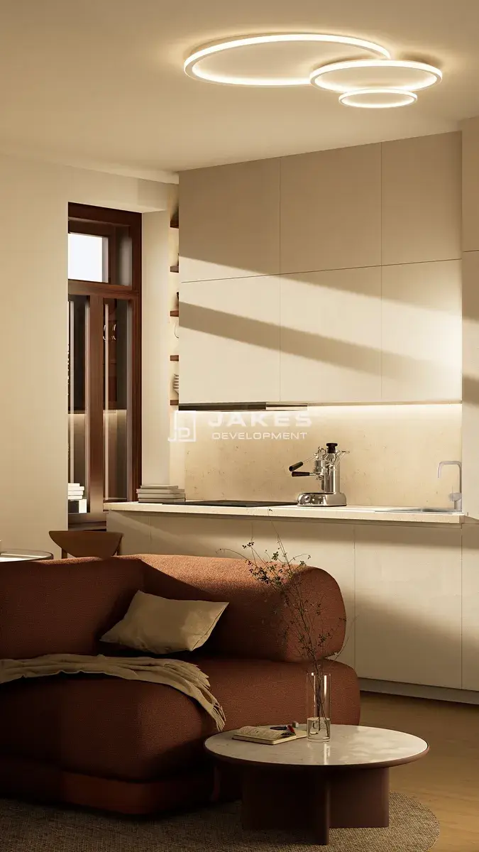 Za příplatek je možné využít balíček Ready to Rent, který zahrnuje kuchyňskou linku se spotřebiči, osvětlení a garnýže, díky čemuž je byt připraven k okamžitému nastěhování nebo pronájmu bez dalších investic.
