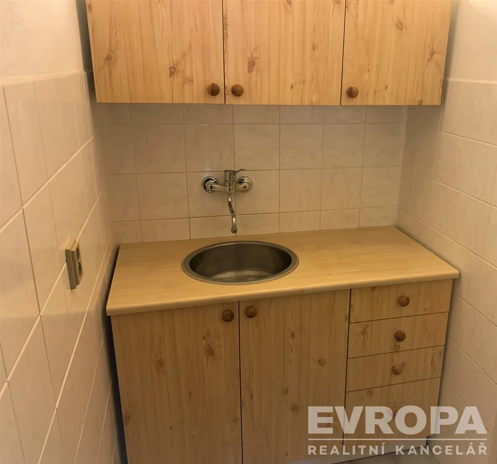 Kancelář se nachází v 1. patře dvoupodlažní budovy s komerčními prostory. K dispozici je sdílená koupelna s WC a kuchyňka, které jsou společné s vedlejší kanceláří. Výhodou jsou také praktické úložné prostory přímo v kanceláři.