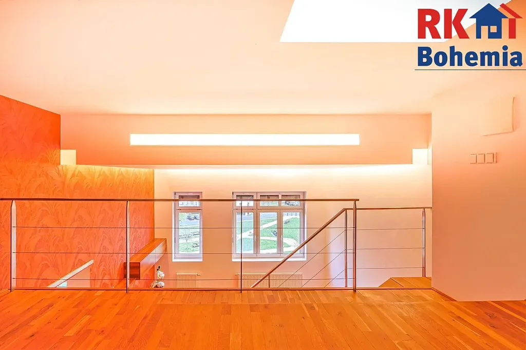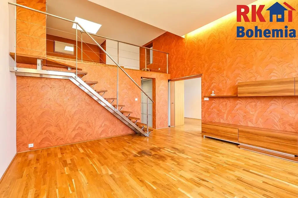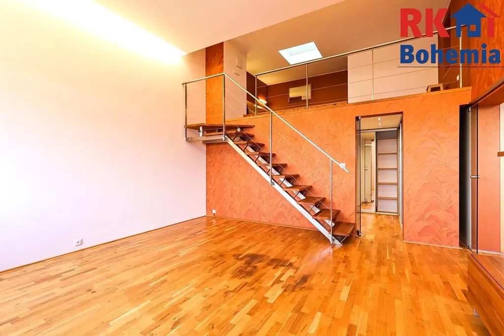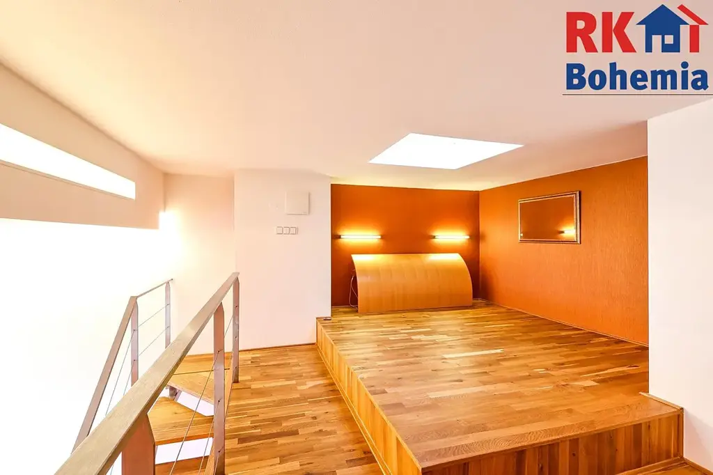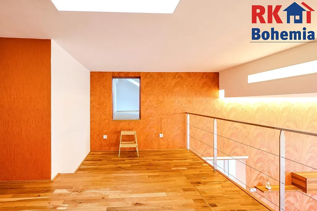 - Ložnice (13,61 m2): Do klidové zóny v patře vstoupíte po schodišti přímo z obývacího pokoje. Ložnice je řešena jako otevřená galerie, což bytu dodává neopakovatelný pocit volnosti a moderní loftový nádech.