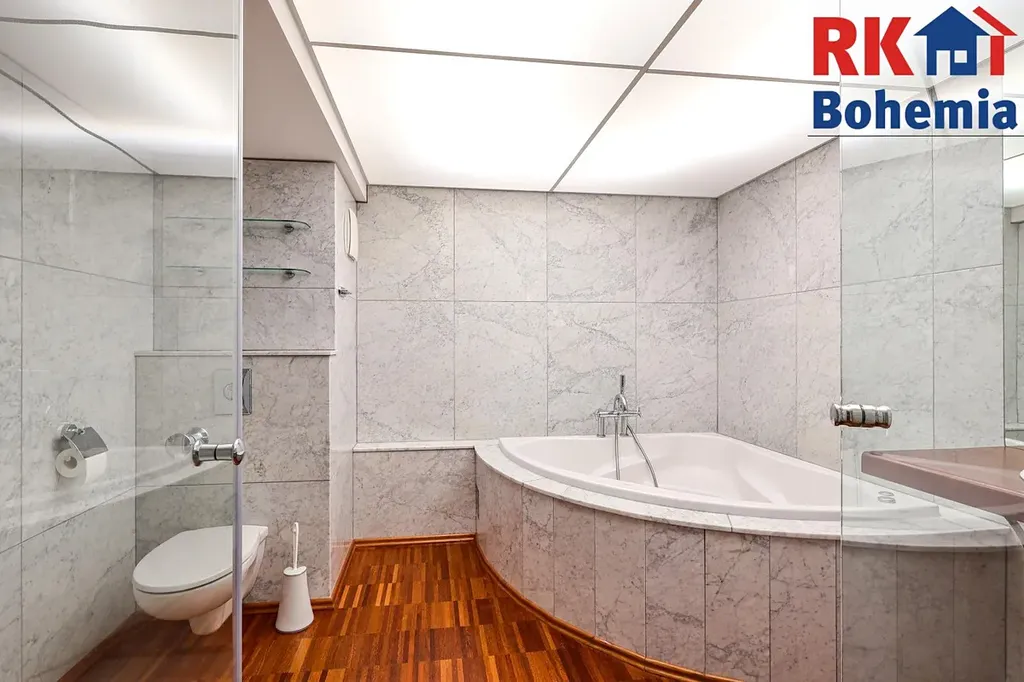 - Koupelna s WC (8,6 m2): Vaše soukromé wellness s vířivou vanou i sprchovým koutem. V bytě je navíc i druhé samostatné WC.