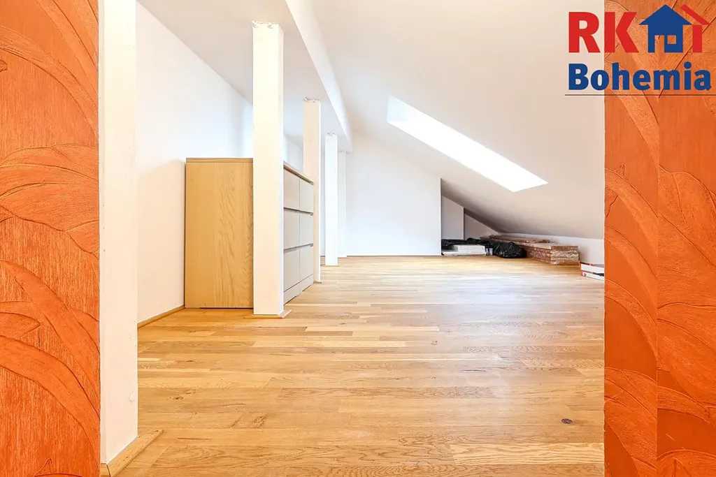- Úložné prostory: Vestavěné skříně na míru jsou umístěny jak v prostorné předsíni (11,83 m2), tak v samostatné šatně (3,74 m2). Přímo k bytu navíc náleží velkorysý půdní prostor (20,35 m2), který je ideální pro uskladnění sezónních věcí.