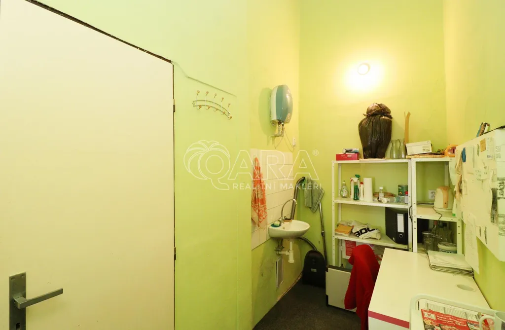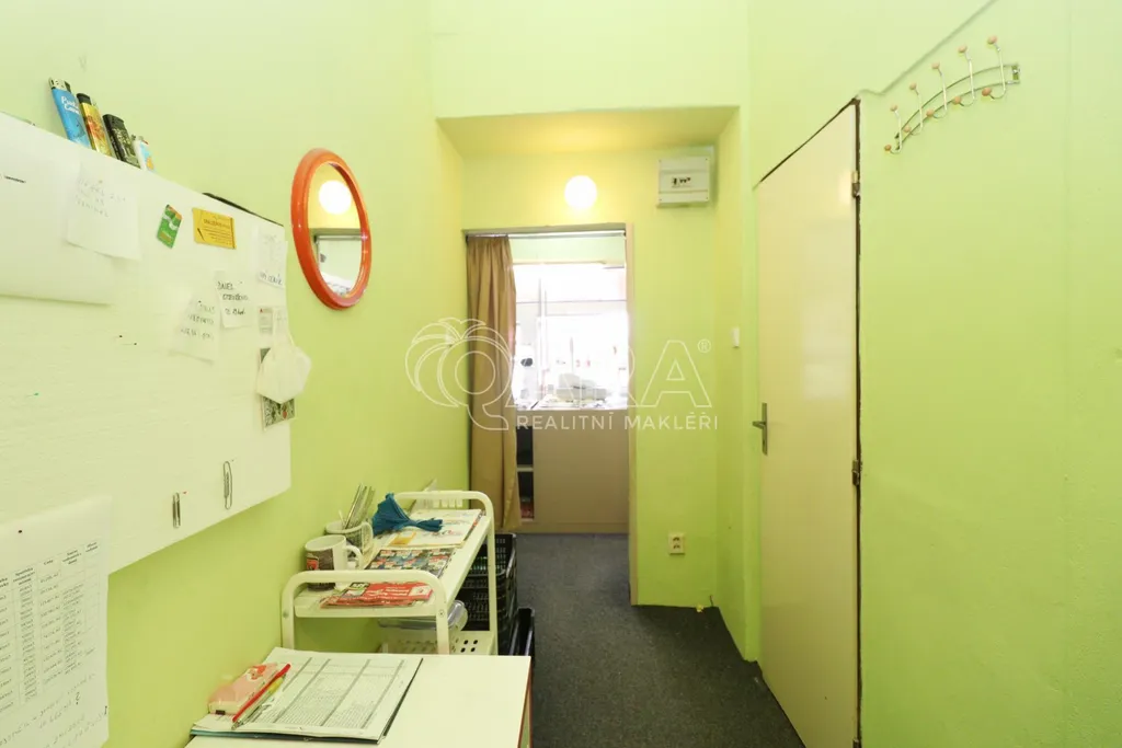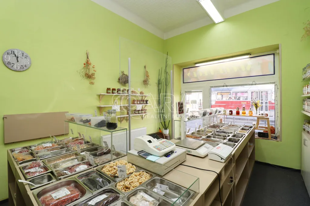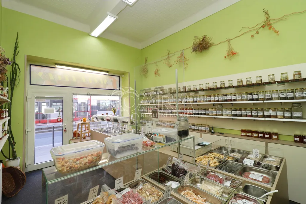 Prostor disponuje velkou výlohou orientovanou do ulice a je plně vybaven zařízením, které je možné odkoupit. V zadní části se nachází zázemí společně s toaletou.