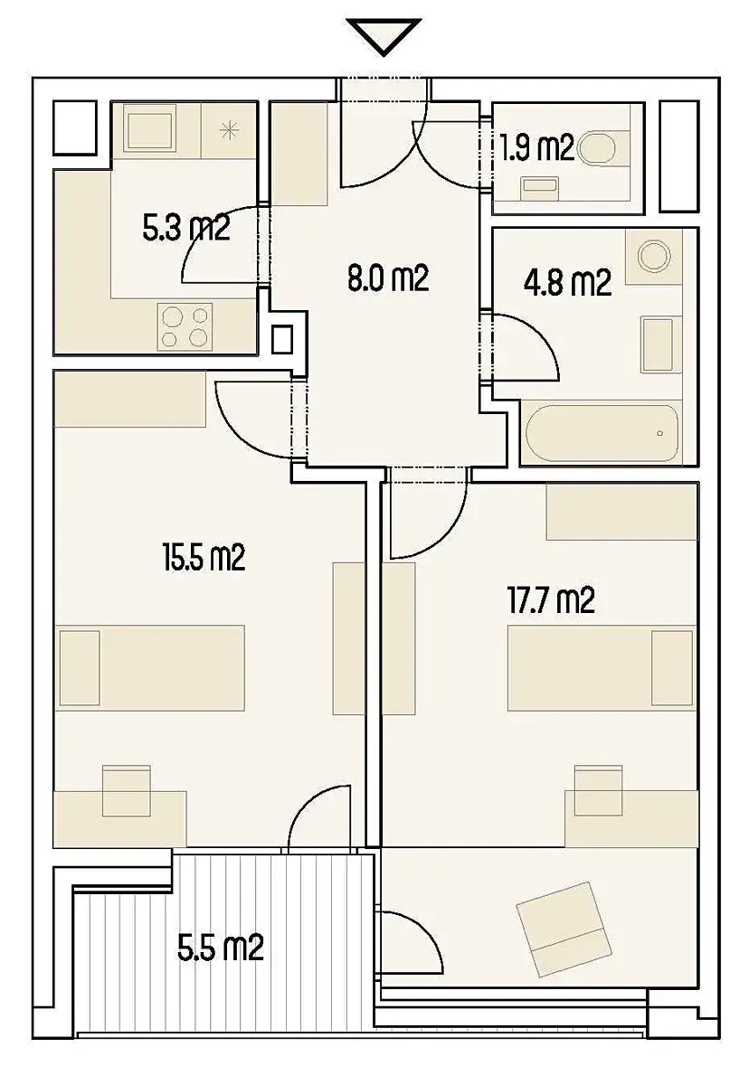 K prodeji je světlý a moderní byt o dispozici 2+1, zkolaudovaný v roce 2020. Oproti běžným 2+kk nabízí plně oddělené místnosti, a tím i vyšší míru soukromí a praktičnosti.