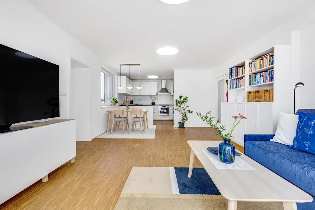 V přízemí se nachází moderně a kompletně zrekonstruovaná bytová jednotka o dispozici 3+kk s výměrou cca 90 m2, jejíž dominantou je obývací část s kuchyní a jídelním koutem o velikosti téměř 40 m2. V celém interiéru najdete kvalitní materiály, včetně dřevěných podlah. Samozřejmostí je samostatná koupelna s vanou i sprchovým koutem, oddělené WC, praktická komora a dva další prostorné pokoje. A bonusem je přímý vstup na prostornou terasu, a to jak z ložnice, tak z obývací části.