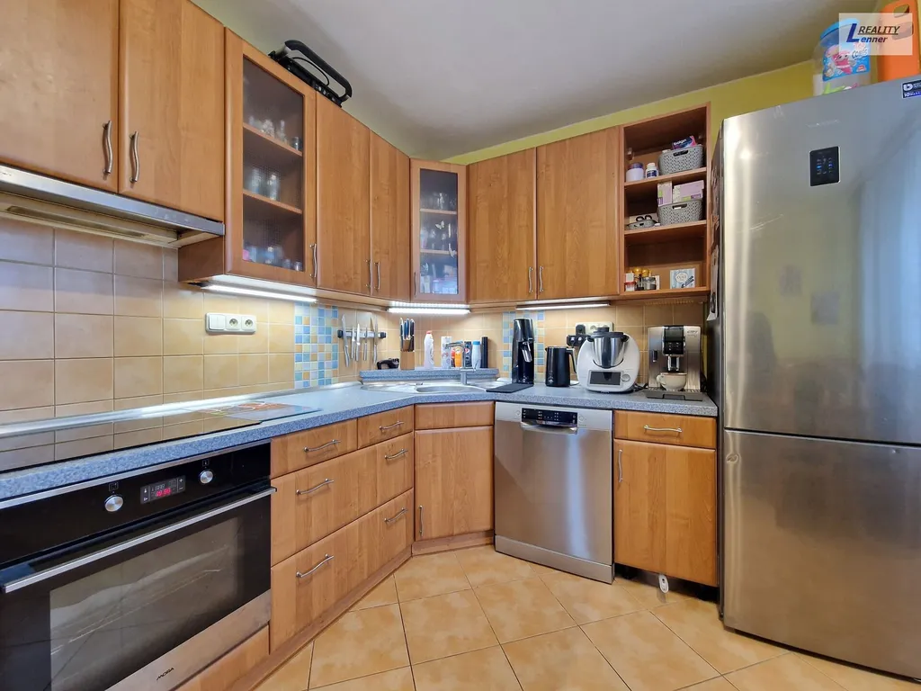 Byt má: kuchyně vč. na zakázku vyrobené kuch. linky se spotřebiči (el. horkovzdušná trouba, indukční trouba, digestoř, myčka 60, samostatná kombinovaná chladnička) vč. spíže a jídelního koutu, plastová okna s izol. dvojskly a trojskly, el. venkovních žaluzie, plovoucí podlahy, novější int. dveře vč. ocel. zárubní, zvětšená koupelna s rohovou vanou a místem pro pračku se sušičkou (voda a odpady v plastu, sádrokartonový strop, zděné jádro), samostatná toaleta s WC kombi, šatní skříň v dětském pokoji, el. novější rozvaděč vč. jističů, rozvody ele. částečně v mědi (kuchyně a příslušenství), úsporné osvětlení v celém bytě, původní vchod. dveře v dobrém stavu, zaveden optický kabel, společná a kabelová TV, lze i pevný telefon.