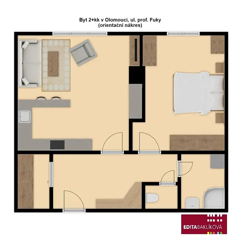 Pronájem bytu 2+kk, Olomouc, Profesora Fuky, 44 m2
