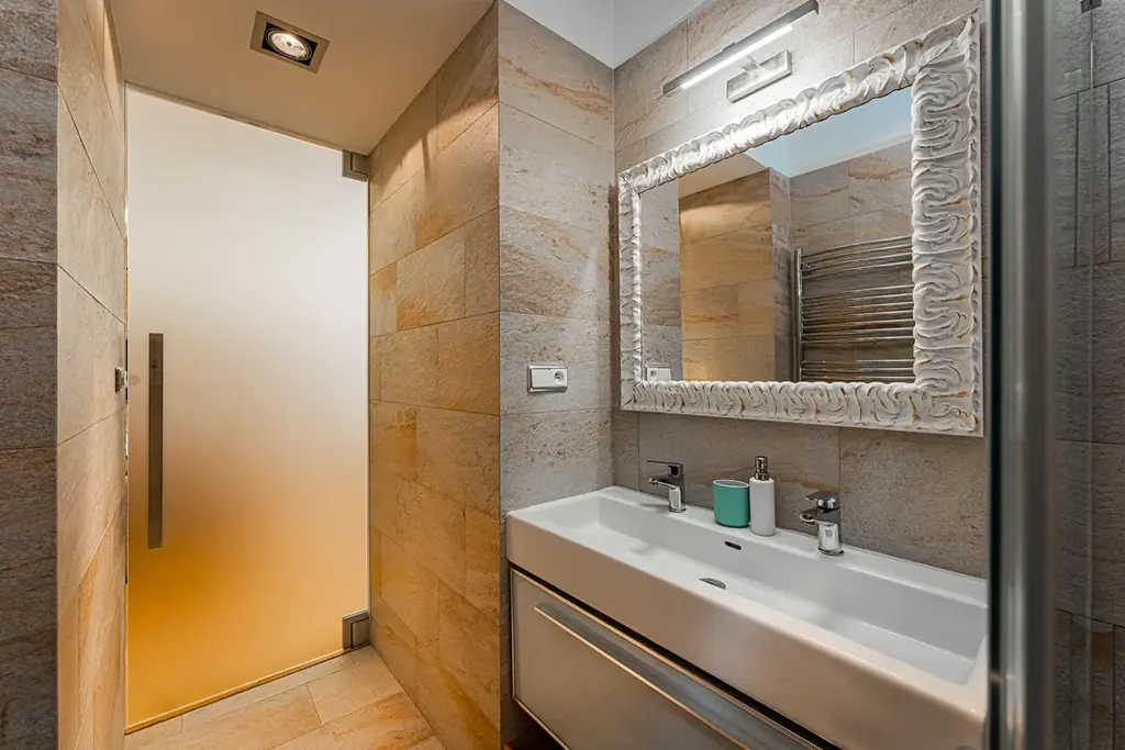 Byt o užitné ploše 108 m² disponuje prostorným obývacím prostorem propojeným s moderně řešenou kuchyní s jídelním stolem a dvěma samostatnými pokoji, které nabízejí dostatek soukromí i komfortu. Velkou výhodou jsou také dvě koupelny se sprchovými kouty a dvě samostatné toalety. Součástí bytu je i praktický sklep.