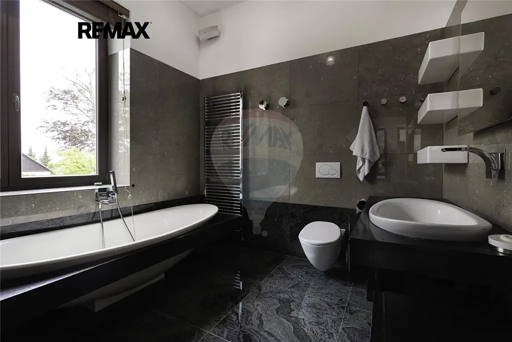 Výjimečná historická vila z roku 1911 (autorem návrhu je architekt Bedřich Karlseder, jeden z nejvýznamnějších představitelů secesní architektury), která prošla kompletní rekonstrukcí v roce 2010, citlivě propojená s moderní přístavbou wellness z roku 2013, představuje harmonické spojení architektonického dědictví, nadčasového designu a nejvyššího komfortu současného bydlení. Již při příchodu zaujme velkoryse prosklený vstupní prostor, který přirozeně propojuje interiér se zahradou, zaplavuje dům denním světlem a vytváří reprezentativní první dojem s atmosférou klidu a elegance. Tato rezidenční nemovitost splňuje nejvyšší nároky na současné bydlení a díky použitým technologiím dosahuje mimořádně úsporná (PENB A). Reprezentativní rezidence nabízí osm prostorných pokojů, čtyři koupelny a samostatné relaxační centrum s krytým bazénem, finskou saunou a vířivkou. Vila je situována uprostřed pečlivě udržované zahrady o rozloze přes 3 300 m² v klidné rezidenční čtvrti města Příbor, pouhé 4 km od Letiště Mošnov. Přízemí vily o ploše téměř 150 m² nabízí reprezentativní obývací pokoj, ložnici, kuchyni se spíží, koupelnu s vanou, sprchovým koutem a toaletou, samostatné WC a dvě vstupní haly. První patro disponuje pracovnou, dětským pokojem, dalším obývacím pokojem, kuchyní, komorou a koupelnou s vanou. Dům je částečně podsklepený; v suterénu se nachází technické zázemí s kotlem, centrálním vysavačem a prádelnou, dále pracovna se sprchovým koutem a šatna. Obytná část je prosklenou chodbou propojena s exkluzivním relaxačním centrem, které bylo realizováno v roce 2013 a nabízí krytý bazén, finskou saunu a vířivku s plně automatizovaným provozem. Součástí je také chodba s toaletou, šatnou a sprchovým koutem. Horní podlaží relaxační části tvoří dvě ložnice, koupelna a technická místnost. Centrum má samostatný vstup a navazuje na něj prostorná zastřešená terasa s grilem a venkovní kuchyní, ideální pro společenská setkání. K nemovitosti náleží dvě garáže s kapacitou pro tři vozy. Kuchyně jsou vybaveny prémiovými spotřebiči Siemens včetně indukční varné desky a vinotéky. Dům je zabezpečen kamerovým systémem, garážová vrata i hlavní brána jsou ovládány dálkově. Vytápění zajišťuje tepelné čerpadlo s možností vytápění plynem nezávisle v obou objektech (v každém i vlastní krb). Na střeše relaxační části je instalována fotovoltaická elektrárna o výkonu 20 kW s bateriovým úložištěm. Zahrada je vybavena automatickým zavlažovacím systémem a veškeré technologie domu – vytápění, voda, elektřina, bazén i zabezpečení – lze komfortně ovládat na dálku prostřednictvím mobilních aplikací. Nemovitost se nachází v klidné slepé ulici, v docházkové vzdálenosti od městského parku, historického centra, obchodů, škol, sportovišť i kulturních zařízení. Příbor, rodiště Sigmunda Freuda, nabízí plnohodnotnou občanskou vybavenost a příjemné prostředí pro rodinné bydlení. Krajské město Ostrava je dostupné přibližně za 20 minut po dálnici D48. Výborná dostupnost vlakem do Prahy - 3 hodiny.