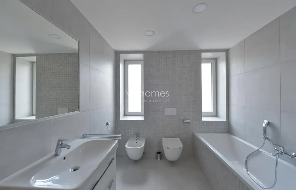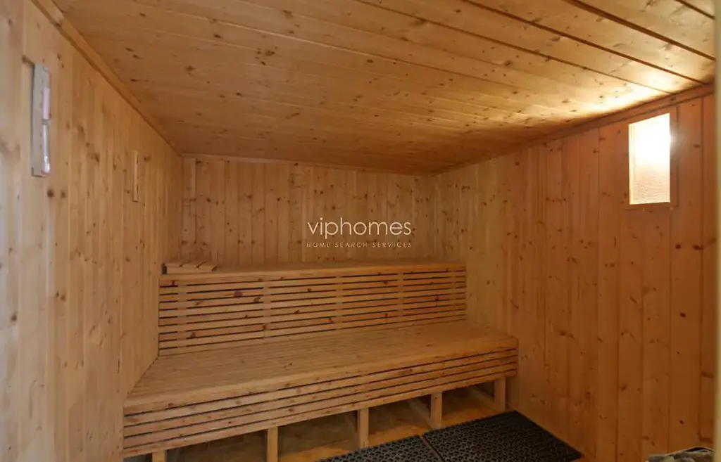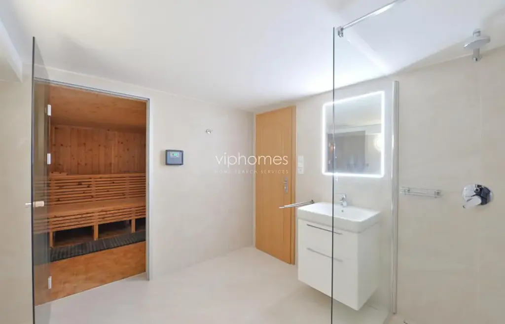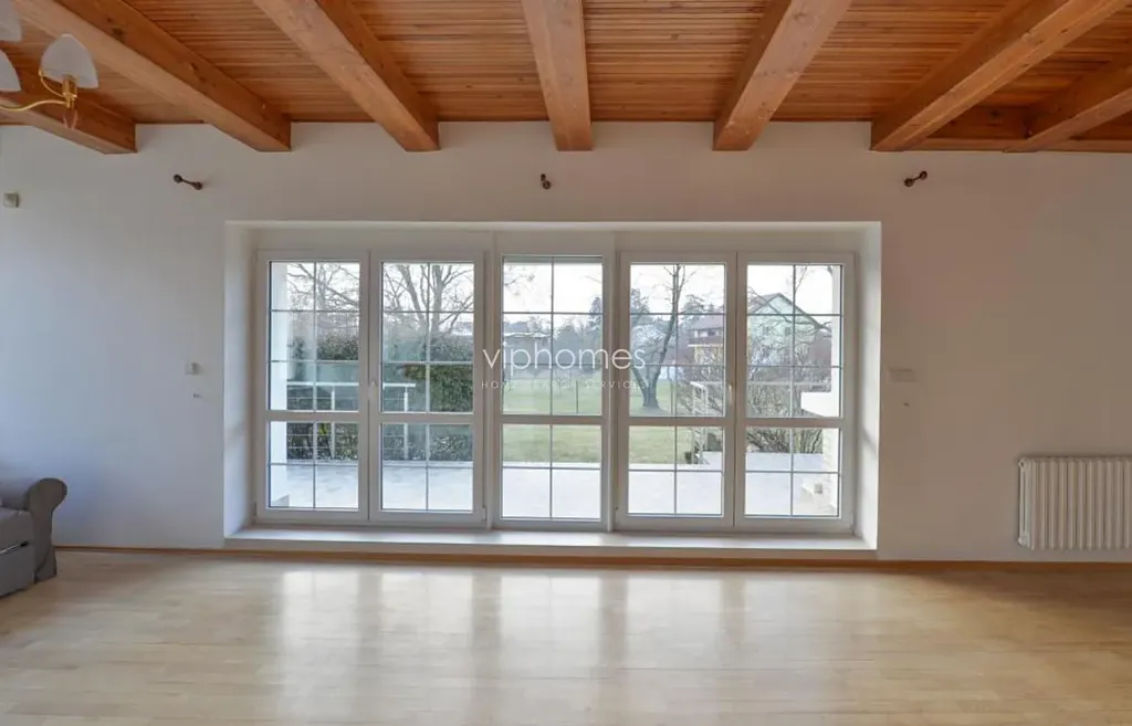 Nově zrenovovaná rodinná vila k pronájmu má celkem 5 ložnic a 4 koupelny. V přízemí domu se nachází hala s vestavěnými skříněmi, prostorný obývací pokoj s krbem (53 m2) a vstupem na velkou terasu; plně vybavena nová kuchyně, dále koupelna s vanou a bidetem a jedna ložnice. Další 4 ložnice, (2x vestavěná skříň), koupelna a zařízena šatna jsou umístěny v prvním patře. V suterénu domu je pokoj pro hosty, hobby místnost / fitness, sauna, koupelna se sprchou, prádelna, technická místnost, garáž. Velká okrasná zahrada s automatickým zavlažovacím systémem. Podlahy: v pokojích parkety a v ostatních prostorách dlažba. Vytápění: elektrické. Vila je součástí dobře udržovaného soukromého rezidenčního areálu se společnou zahradou, bazénem, posilovnou a saunou. 2 x garáž.