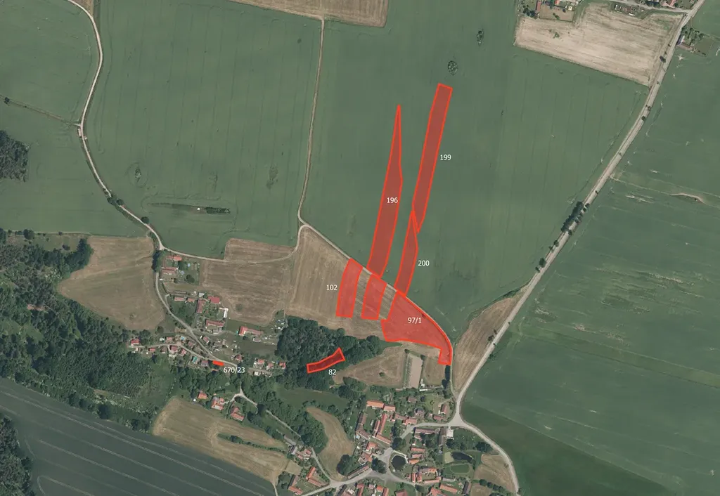 -> parc. č. 82, 97/1, 100/1, 102, 144/2, 153/1, 162, 193, 196, 199, 200, 460/2, 464, 466, 489, 510/8, 510/9, 510/10, 510/27, 510/41, 510/42, 510/43, 510/44, 514/2, 514/6, 514/7, 514/8, 514/9, 514/10, 514/11, 528, 530/1, 530/2, 530/3, 532, 670/23 a 705/1 (LV 423)