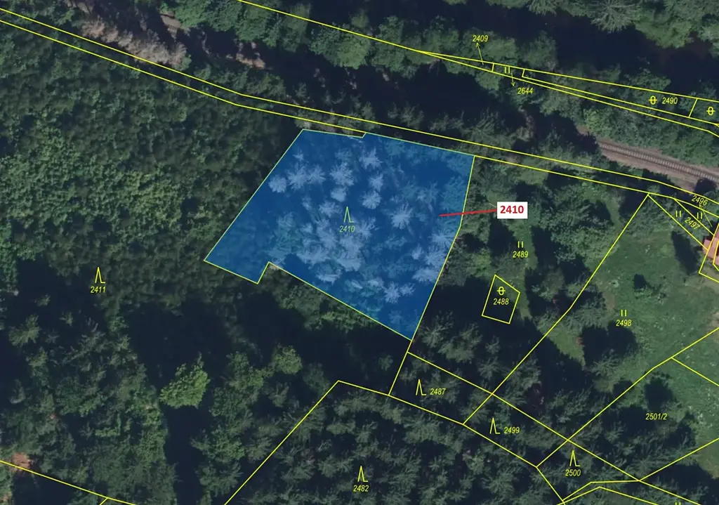 Lesní pozemek o výměře 2416 m2, parcelní číslo 2410, podíl 1/1, katastrální území Jablonec nad Jizerou, obec Jablonec nad Jizerou, obec s rozšířenou působností Jilemnice, okres Semily, Liberecký kraj. Po těžbě.
