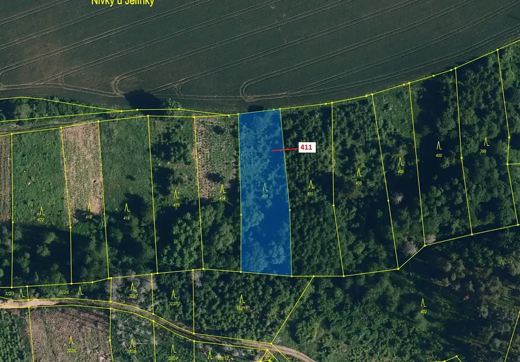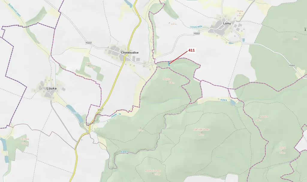 Lesní pozemek o výměře 1979 m2, parcelní číslo 411, podíl 1/1, katastrální území Chotěbudice, obec Chotěbudice, obec s rozšířenou působností Moravské Budějovice, okres Třebíč, Kraj Vysočina.