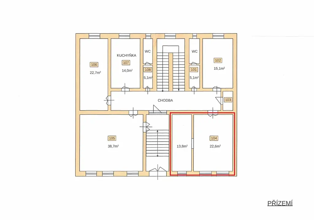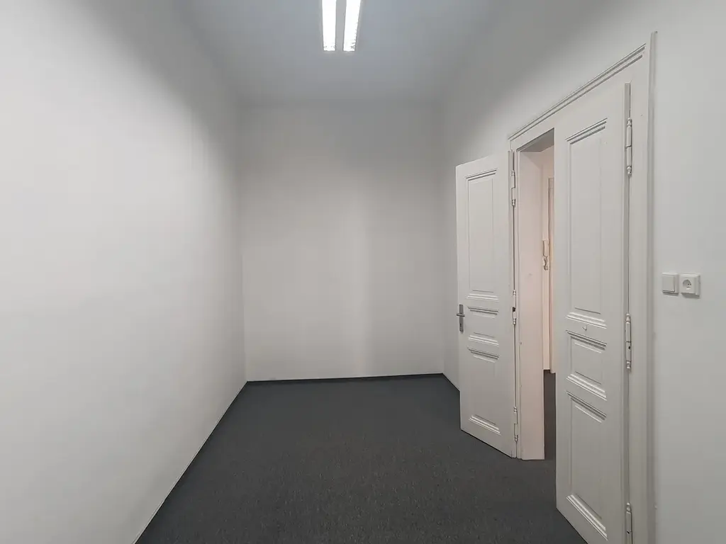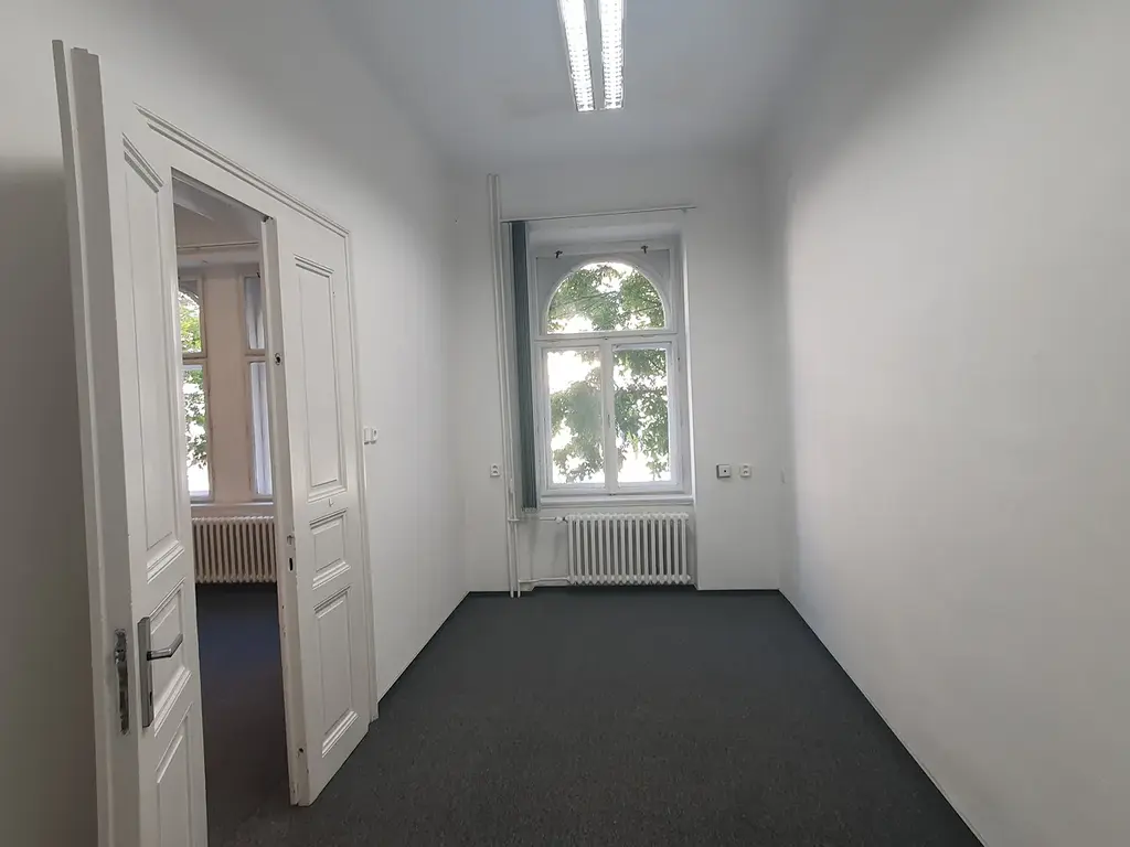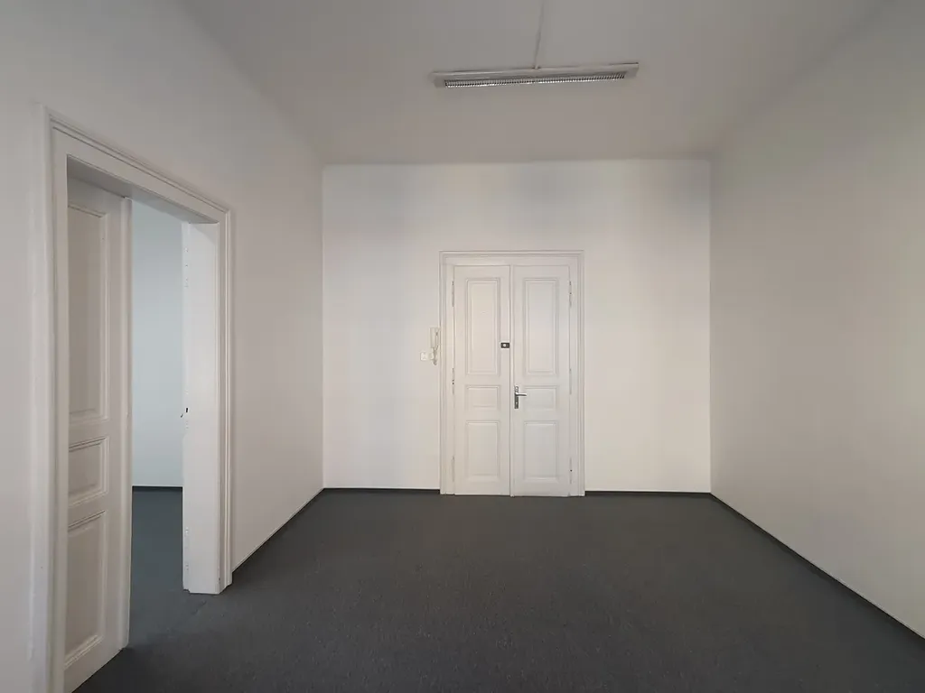 Jedná se o dvě propojené kanceláře s jedním vstupem z chodby o ploše 22,6 + 13,8 m2, v 1. nadzemním podlaží kancelářské budovy. Okna jsou orientována do ulice, je zde tak možnost do nich umístit dobře viditelnou reklamu. Kancelář je po rekonstrukci, bíle vymalovaná, na podlaze je koberec, pro internetové připojení je využitelná linka od O2.