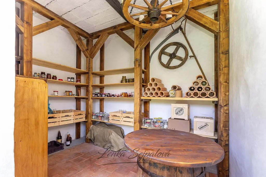 Je zde koupelna, infrasauna, druhé WC v podkroví, vinný sklípek za potokem, terasa s venkovním krbem a garáž. Pozemek je oplocen a tak je to ideální pro vaše dětské miláčky i chlupaté mazlíčky.