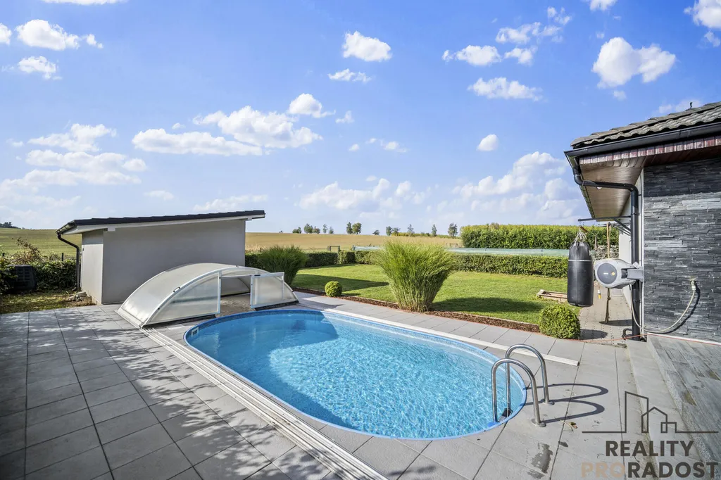 Prodej přízemního rodinného domu 5+1, 200 m², terasa, bazén, zastřešené stání – Choltice / Chrtníky