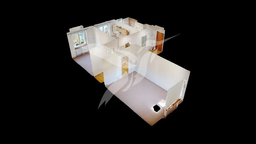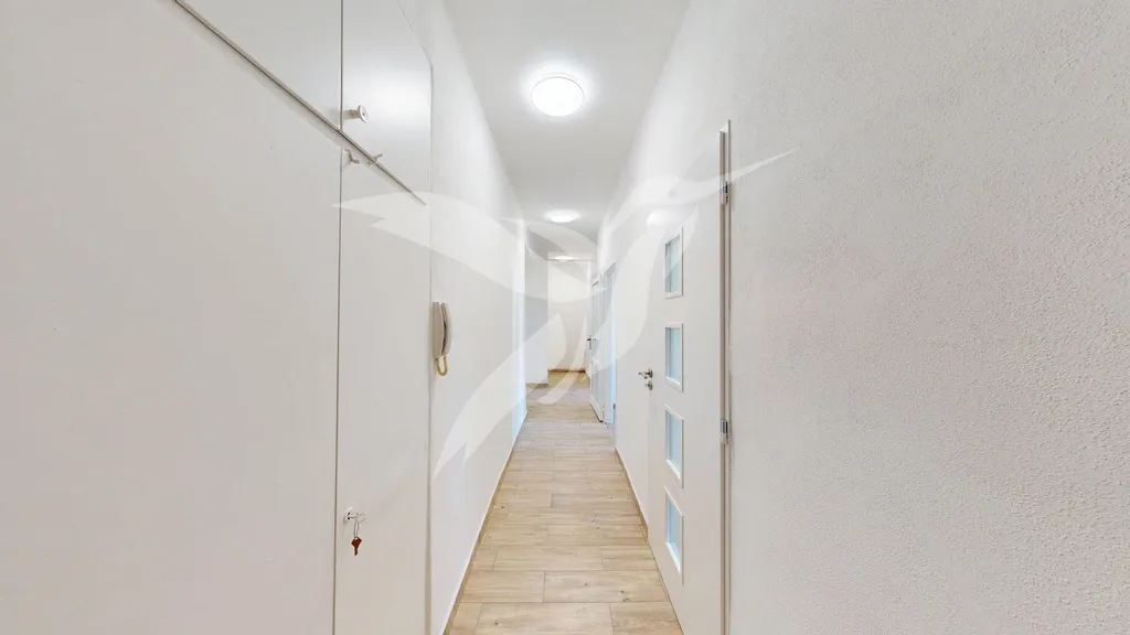 Nemovitost o velikosti 57 m2 se nachází v 1. NP (přízemí) cihlového domu bez výtahu a skládá se z předsíně se šatním prostorem, pokoje včetně kuchyňské linky, 2x samostatného pokoje, koupelny s toaletou a k bytu náleží i sklep situován v suterénu bytového domu. Bytová jednotka se pronajímá jako nezařízená a její součásti je kuchyňská linka se spotřebiči (varná deska + digestoř, elektrická vestavěná trouba), dále skříň v předsíni. Vytápění bytu je zajištěno elektrickým kotlem a ohřev vody elektrickým bojlerem. Předností je skvělá lokalita v klidné části Domažlic s občanskou vybaveností i dostupnosti MHD - v docházkové vzdálenosti školka, obchod, dětské i sportovní hřiště.