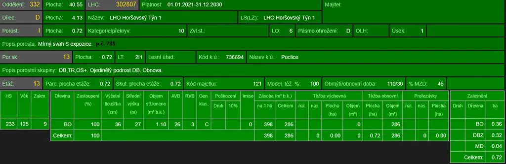 - p.č. 735 vedená jako lesní pozemek o celkové výměře 7 017 m2, z toho vlastníme podíl 2/3 tedy 4 678 m2 (stáří lesa 130 let - zastoupení dřevin borovice).