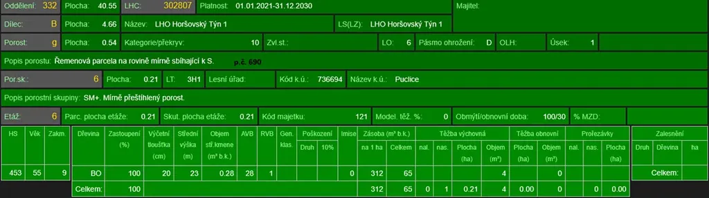 - p.č. 690 vedená jako lesní pozemek o celkové výměře 5 444 m2, z toho vlastníme podíl 2/3 tedy 3 659 m2 (stáří lesa 110 let - zastoupení dřevin borovice, modřín, dub, stáří lesa 90 let - zastoupení dřevin borovice, dub, stáří lesa 60 let - zastoupení dřevin borovice),