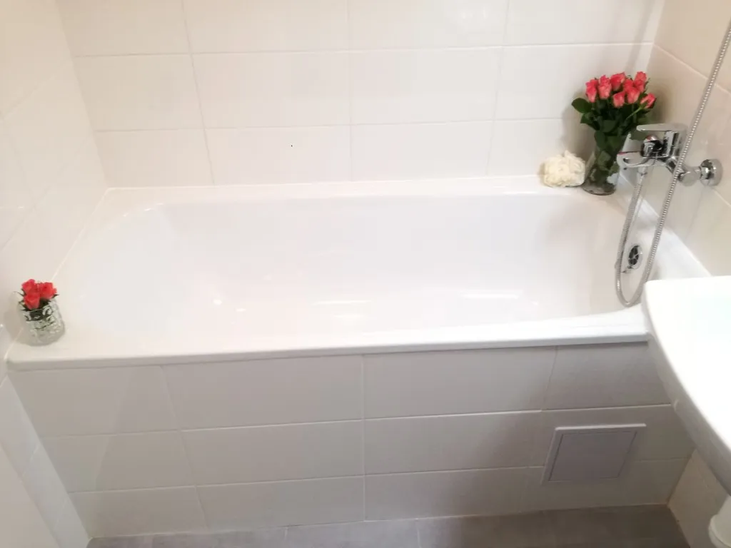 Koupelna disponuje vanou a umyvadlem, toaleta je odděleně.