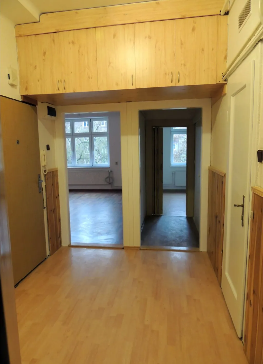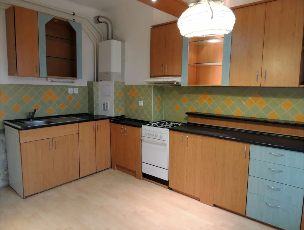 Kuchyňská linka je opatřena plynovým sporákem, plynovou troubou a vstupem na balkón. Byt nabízí dva velké a prostorné pokoje.
