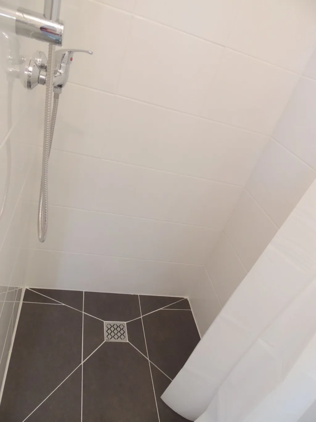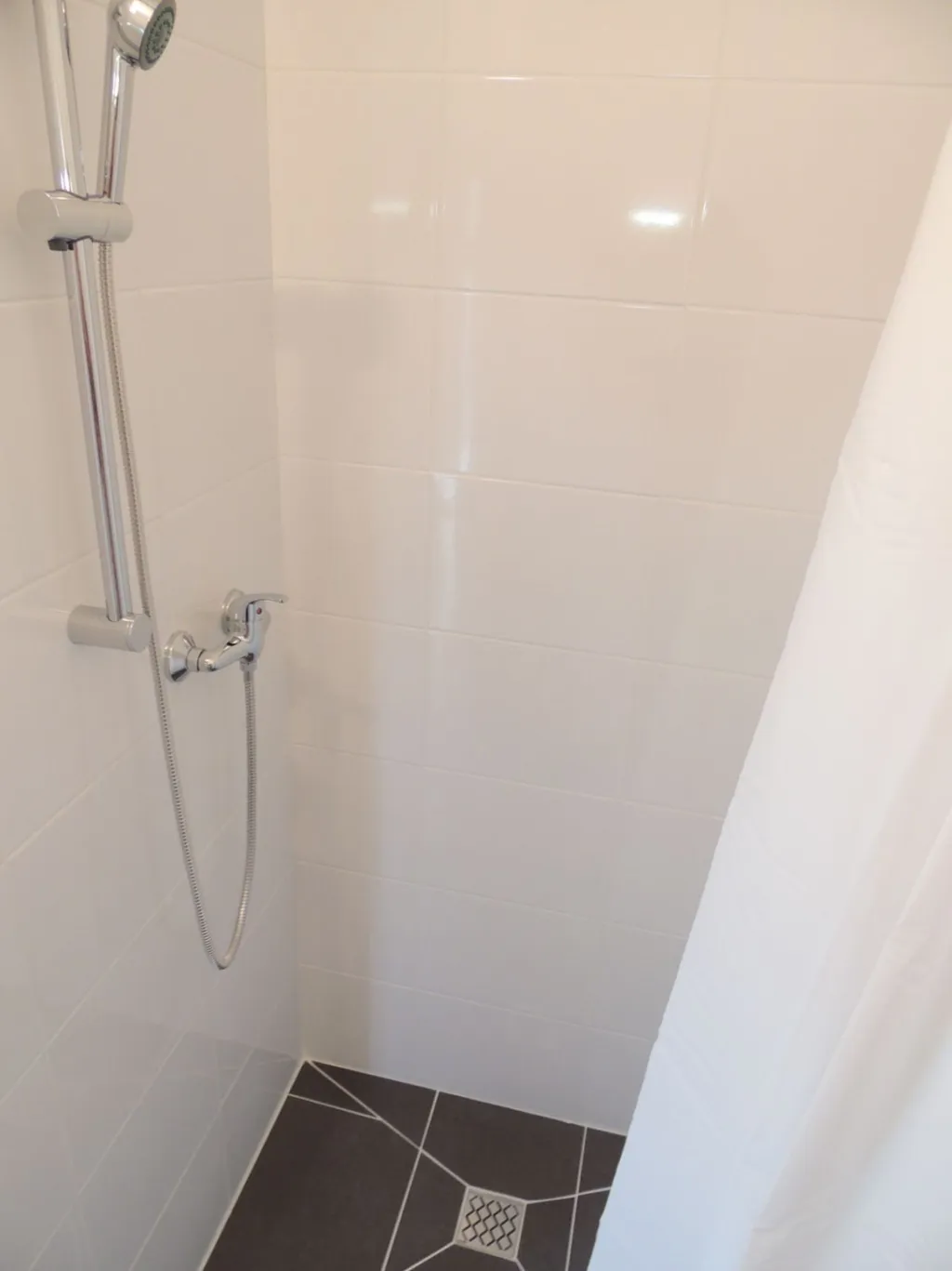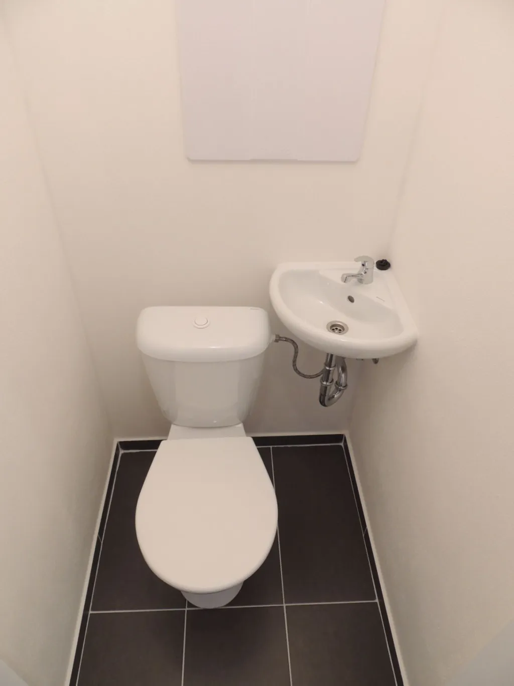 Koupelna se sprchovým koutem, toaleta je odděleně a součástí toalety je umyvadlo.
