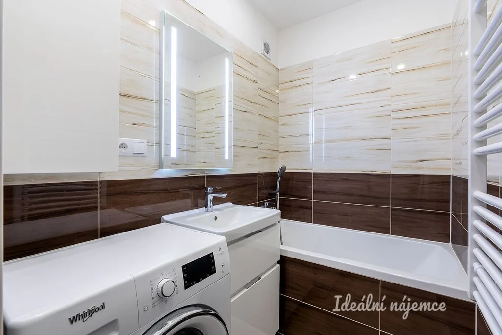 Srdcem bytu je útulný obývák s velkou, pohodlnou pohovkou ideální pro relaxaci. Moderní kuchyňská linka je plně vybavena spotřebiči včetně myčky nádobí. Soukromá zóna s manželskou postelí a dalšími úložnými prostory pro vaše věci. Koupelna disponuje vanou a pračkou. Toaleta je pro větší komfort oddělena samostatně. V bytě najdete dostatek skříní a chytře řešených míst pro všechno vaše vybavení.