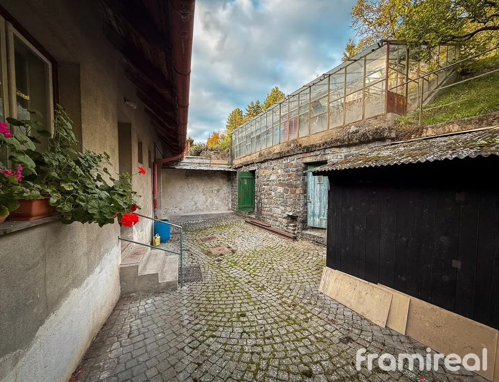 Součástí nemovitosti jsou také dva samostatné sklepy (17,5 m²) se vstupem z uzavřeného dvora, kůlna, skleník a vlastní studna. Dům je napojen na plyn - vytápění i ohřev vody zajišťuje plynový kotel.