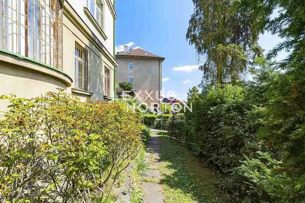 Historická vila z předválečné doby zasazená ve svahu, dominantou bytů je nádherný výhled na Prahu. V domě jsou 3 byty, v suterénu je byt s dispozicí 2+1 o velikosti 56m, vytápění bytu pomocí WAW, na tomto patře je i prádelna a sklepní kóje k bytům. V 1.NP je byt 4+1 o velikosti 88 m2 s lodžií 1m2, vytápění el. přímotopy, ve 2.NP je byt 3+1 o velikosti cca 88 m2, vytápění plynovým kotlem. K dispozici je pak i půda pro případnou další realizaci bytových jednotek. K parkování slouží dvě zastřešená místa na pozemku a zděná garáž. Dům je určený k celkové rekonstrukci, kdy mohou s použitím půdy vzniknout 3 byty a ateliér nebo 3 byty s horním mezonetem nebo k demolici a výstavbě nového bytového domu. Lokalita je dle Územního plánu OB (čistě obytné), jedná se o tzv. stabilizované území, nejsou zde definovány další regulativy typu zastavěné plocha, podlažnost apod. Nový development se řídí charakterem okolní zástavby. Na pozemku je vzrostlá a udržovaná zeleň.