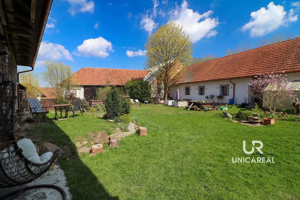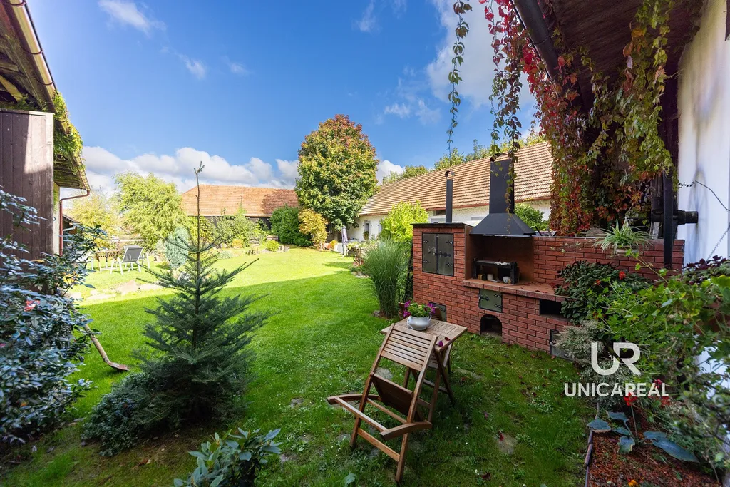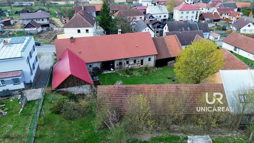 Tato nemovitost si Vás okamžitě získá svou atmosférou i jedinečným charakterem. Součástí areálu je obytná stavba, prostorná stodola a hospodářské objekty, které dohromady vytvářejí uzavřený dvůr poskytující maximální soukromí. Usedlost je ideální jak pro trvalé bydlení, tak pro rekreační účely či investiční záměry.