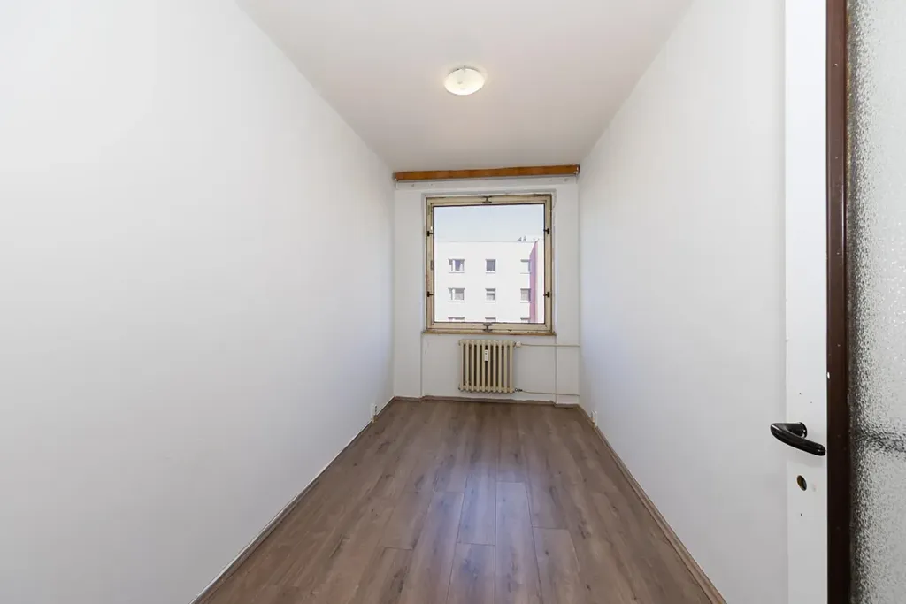 Byt je vhodný k rekonstrukci a není zařízen. Hlavní předností je prostornost bytu a praktické rozložení pokojů. Velký obývací pokoj, orientovaný na jih, slouží jako centrální prostor, ze kterého lze vyjít na lodžii s příjemným posezením a s výhledem do okolí. V současnosti je kuchyň v samostatném pokoji s kuchyňskou linkou a plynovým sporákem a troubou. Dále jsou zde dva samostatné pokoje orientované na sever, chodba, koupelna, samostatná toaleta a praktická komora, která poslouží jako šatna nebo úložný prostor. K bytu náleží sklep. Byt lze předělat na 4+kk, rekonstrukce nabízí novým majitelům možnost přizpůsobit byt svým představám. Byt je vybaven ústředním centrálním vytápěním a ohřevem vody.