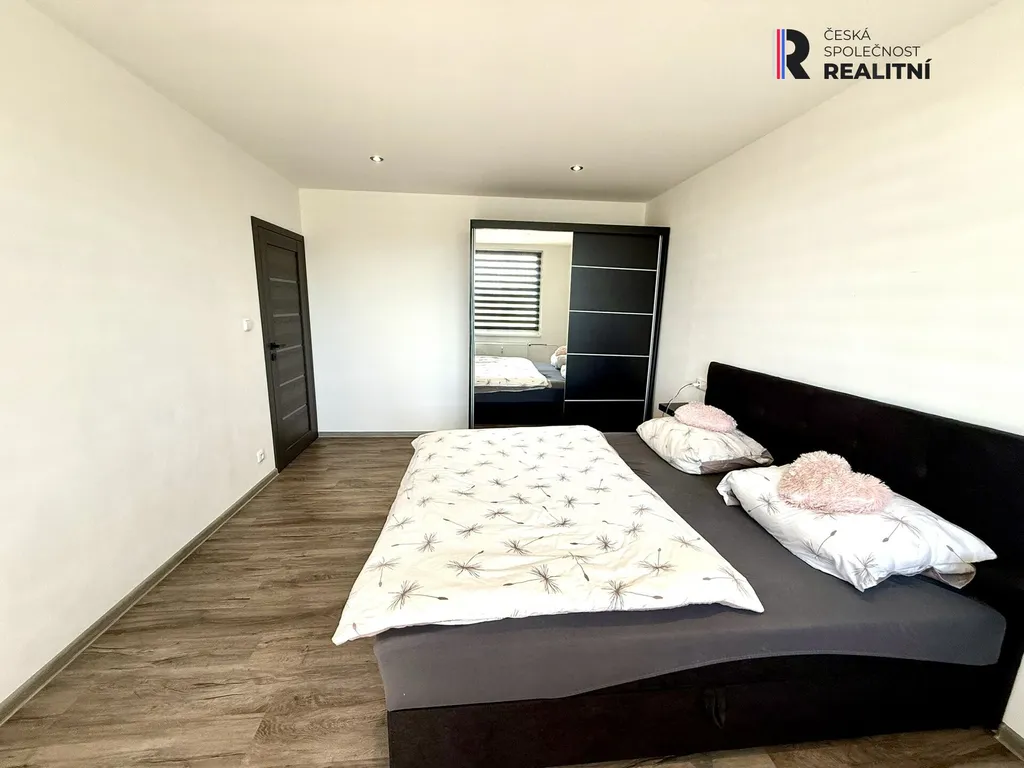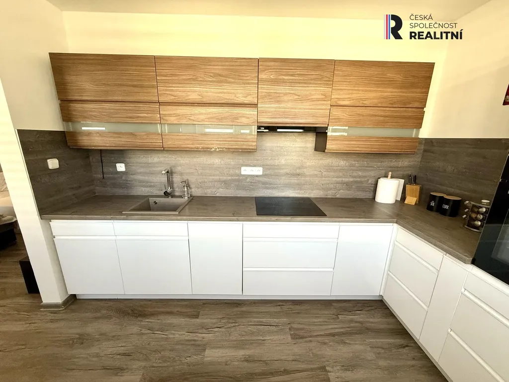 Interiér je světlý, vzdušný a vkusně sladěný. Obývací pokoj poskytuje příjemné zázemí pro relaxaci i jídelní kout. Samostatná kuchyň je vybavena moderní kuchyňskou linkou na míru s dostatkem pracovního i úložného prostoru. Ložnice je prostorná a nabízí praktickou vestavěnou skříň.