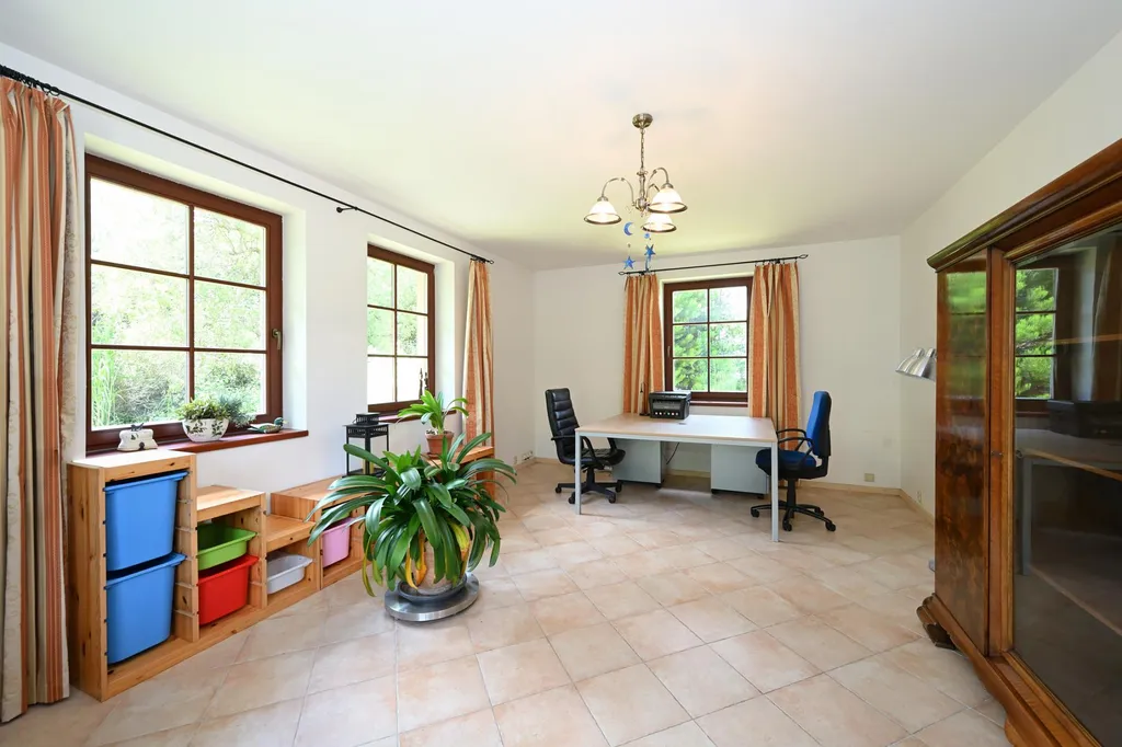 Na pozemku 1269 m2 jižně orientovaný rodinný dům o velikosti 402 m2. Ideální pro ty, kteří hledají světlo, klid, soukromí. Idylické venkovní posezení s vlastním rybníčkem. V přízemí domu dlažba s podlahovým vytápěním. V celém domě pocit volnosti a prostoru.