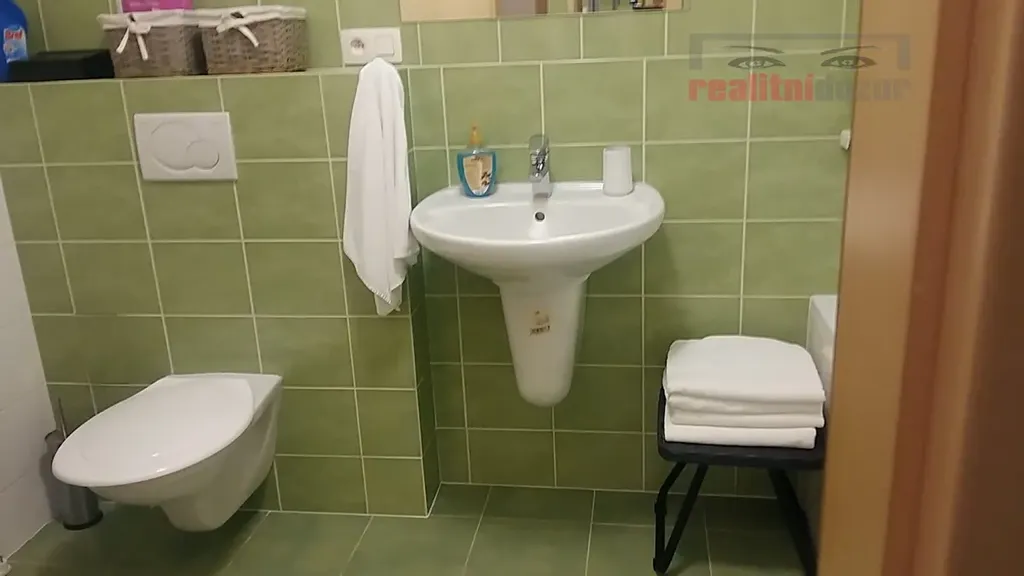 - z chodby je také vstup do koupelny - ta je vybavena vanou, umyvadlem, WC a topným žebříkem.