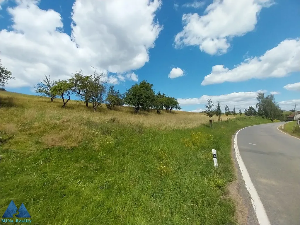 Pozemek je mírně svažitý a nachází se v klidné okrajové části obce.