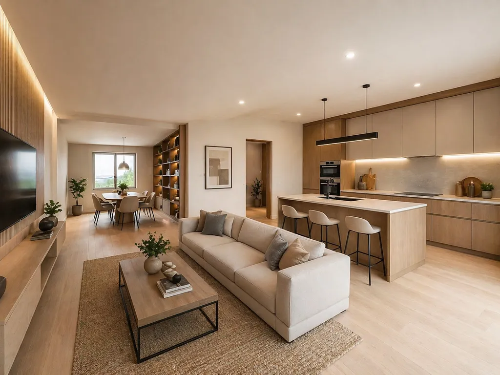Přízemí (1.NP): Otevřený obývací pokoj s kuchyní a jídelnou se vstupem na terasu a zahradu. Koupelna s WC a technická místnost.