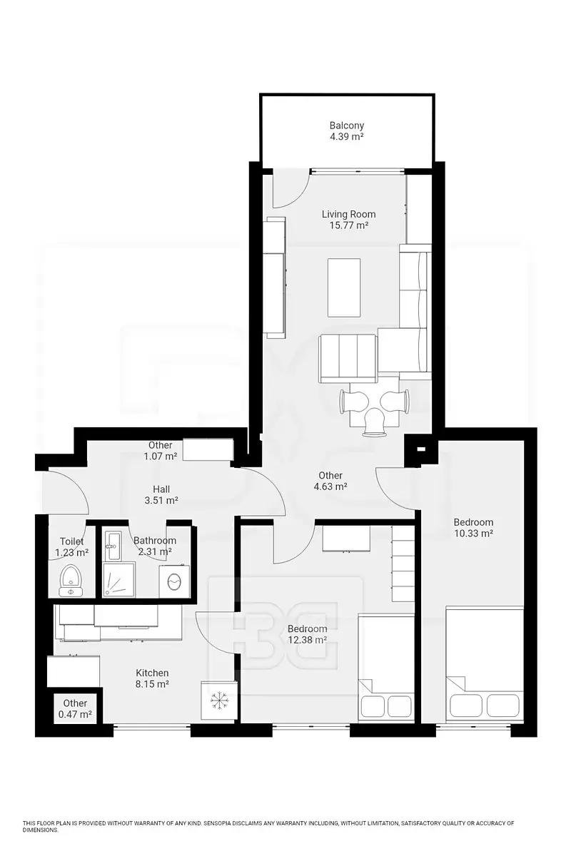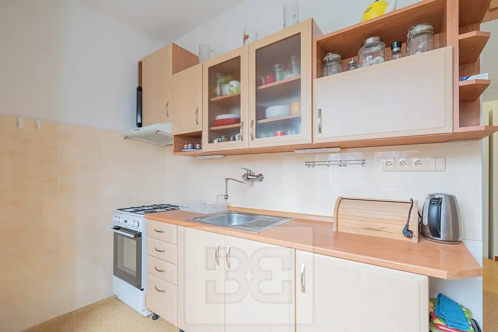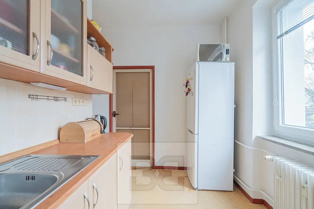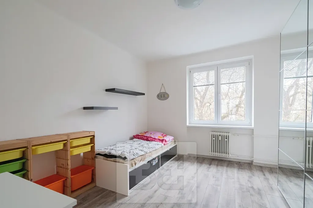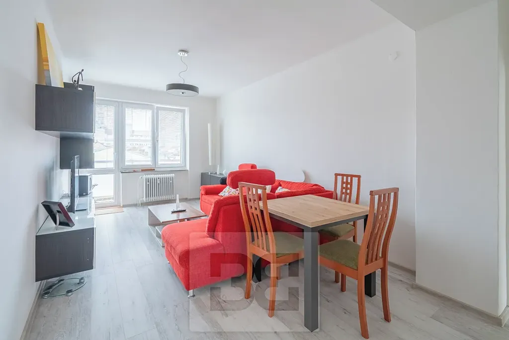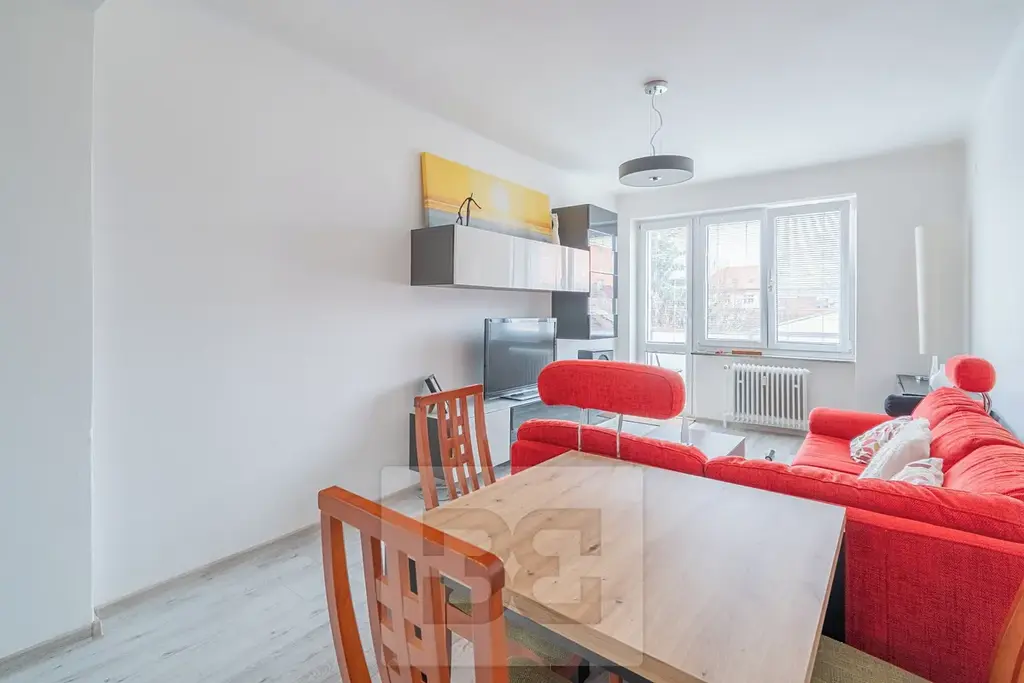 Srdcem celého bytu je prostorný obývací pokoj situovaný v centrální části, ze kterého je přímý vstup na balkon. Dispozice bytu dále nabízí dvě samostatné ložnice. Jedna z nich je průchozí do kuchyně. Interiér je v současné době vybaven nábytkem, který vidíte na fotografiích Pokud budete preferovat vlastní nábytek, je možné se domluvit na odvozu části stávajícího zařízení tak, aby vám prostor maximálně vyhovoval.
