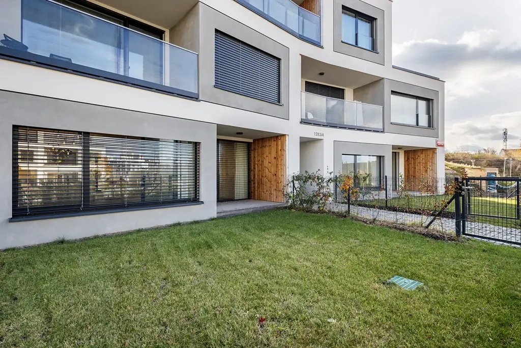Jak z hlavní ložnice, tak z obývací části je přímý vstup na zastřešenou lodžii a do předzahrádky, která poskytuje klidné posezení orientované do tichého vnitrobloku.