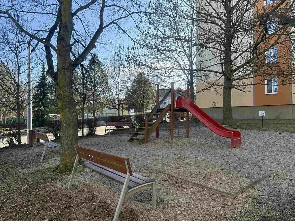 Dům je zasazen do krásně upraveného vnitrobloku. Zapomeňte na šedivá sídliště – zde na vás čeká moderní urbanistický celek plný zeleně, s dětským hřištěm, odpočinkovými zónami a lavičkami. Parkování je vyřešeno plochami přímo u domu.