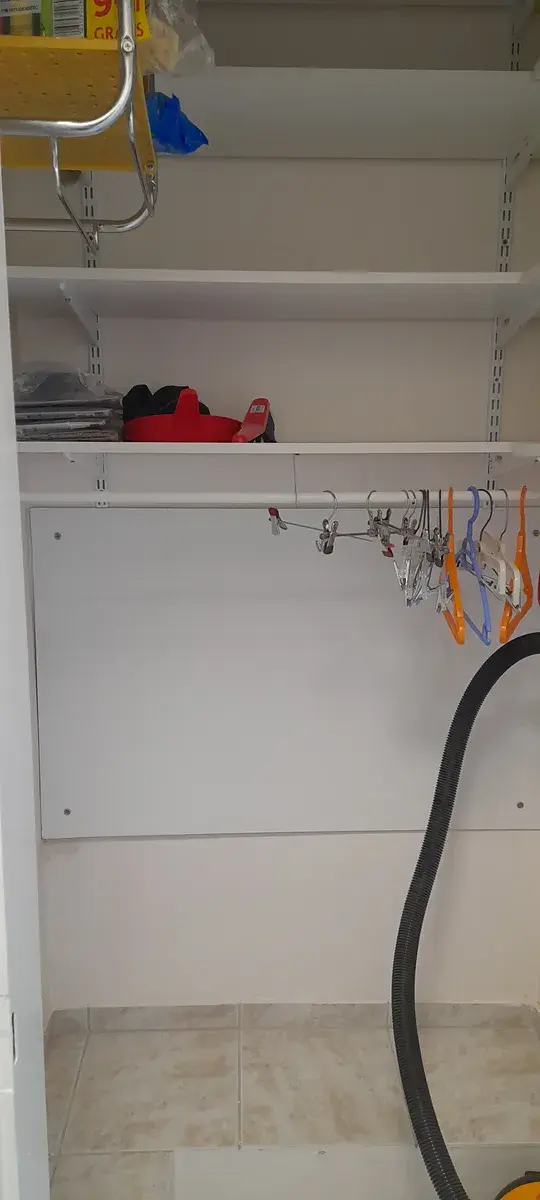 V chodbě je prostorná komora a další úložný prostor pod stropem.