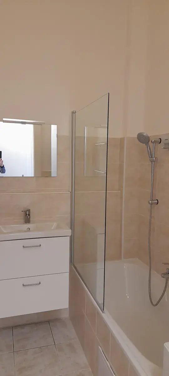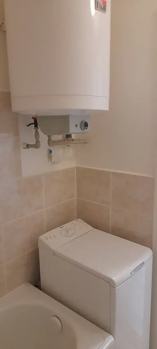 Samostatné WC a koupelna s vanou se zástěnou, el. bojlerem a pračkou.