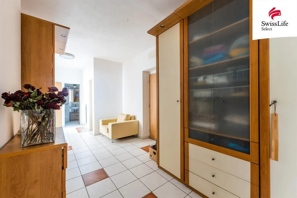 Dispozice je navržená tak, aby fungovala v každodenním životě otevřený obývací prostor s kuchyní tvoří přirozené centrum bytu, zatímco jednotlivé pokoje poskytují dostatek soukromí pro rodinu, práci i odpočinek. Kuchyň je plně vybavená vestavěnými spotřebiči (plynový sporák, trouba, myčka, lednice s mrazákem) a nechybí ani pračka, takže se můžete bez starostí rovnou nastěhovat.