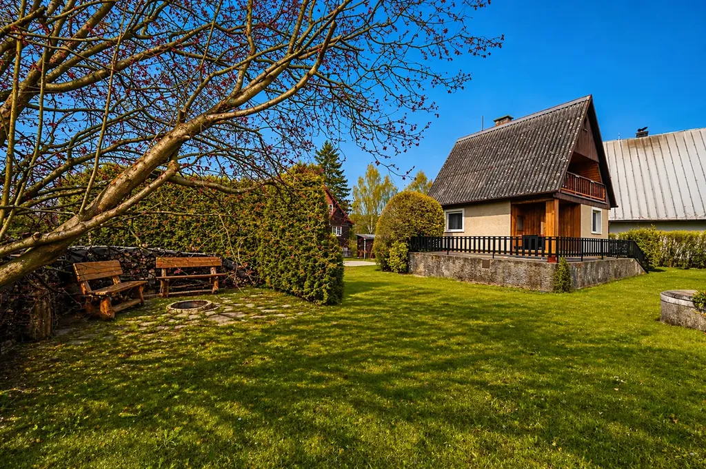 Velkým benefitem je klidné venkovní zátiší s posezením a ohništěm, kde si můžete užívat ničím nerušené chvíle v přírodě, večerní posezení s rodinou nebo víkendové grilování s přáteli.
