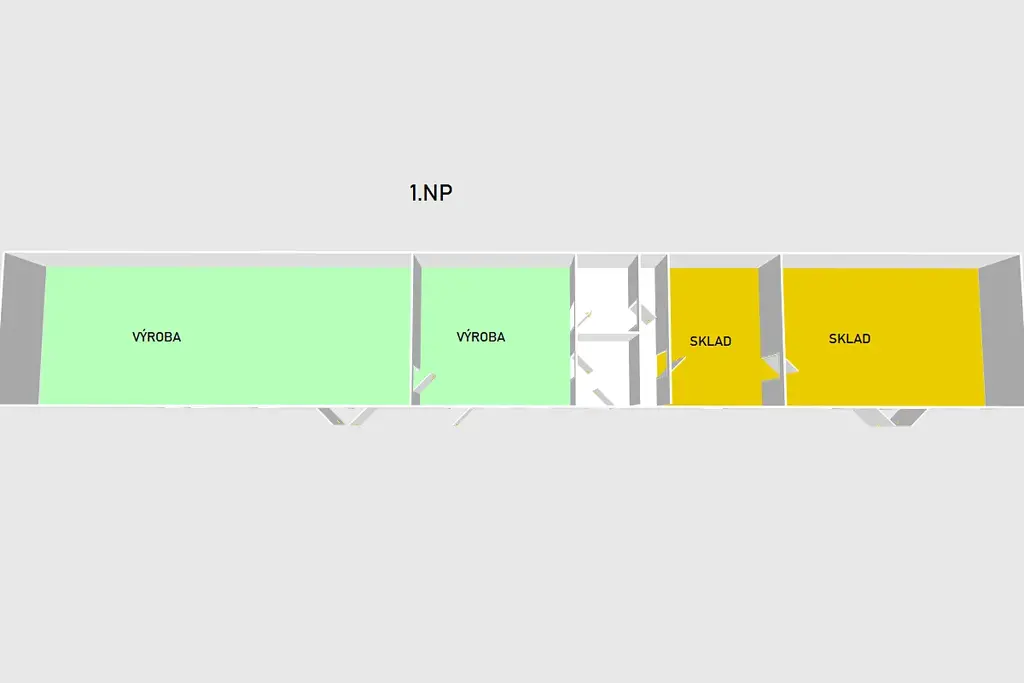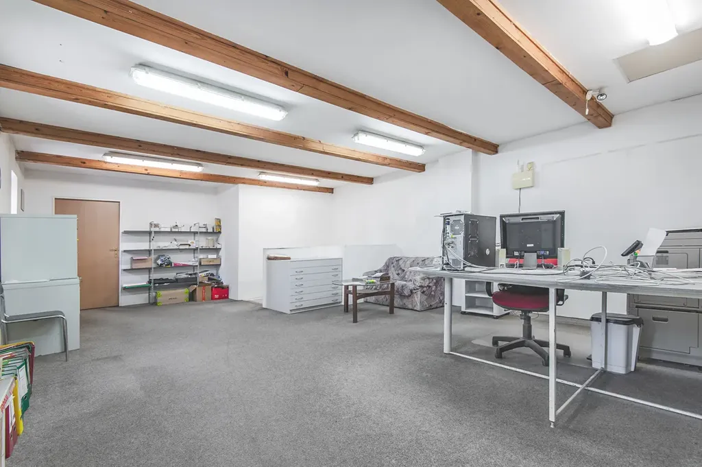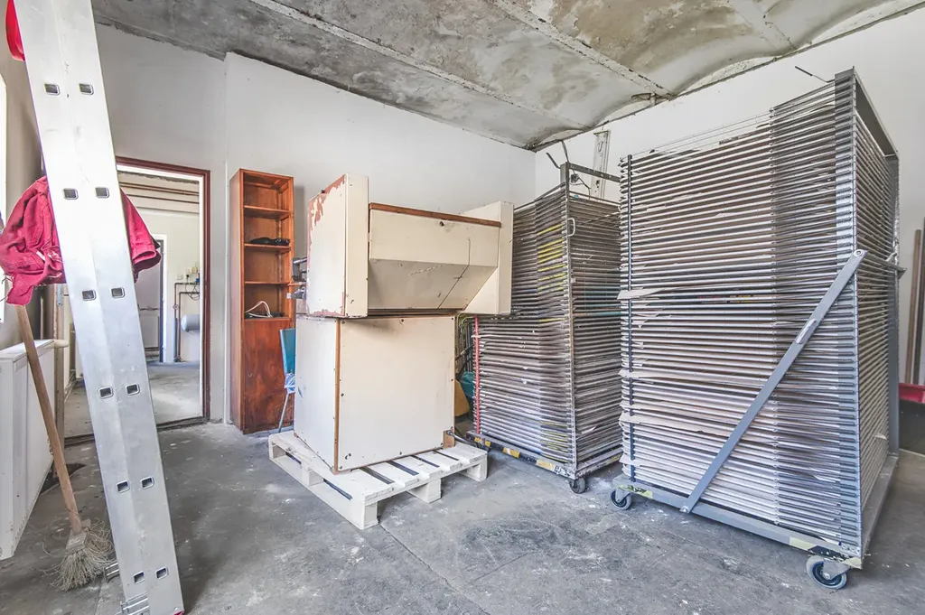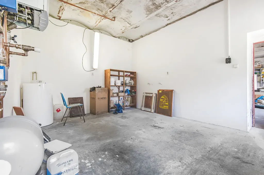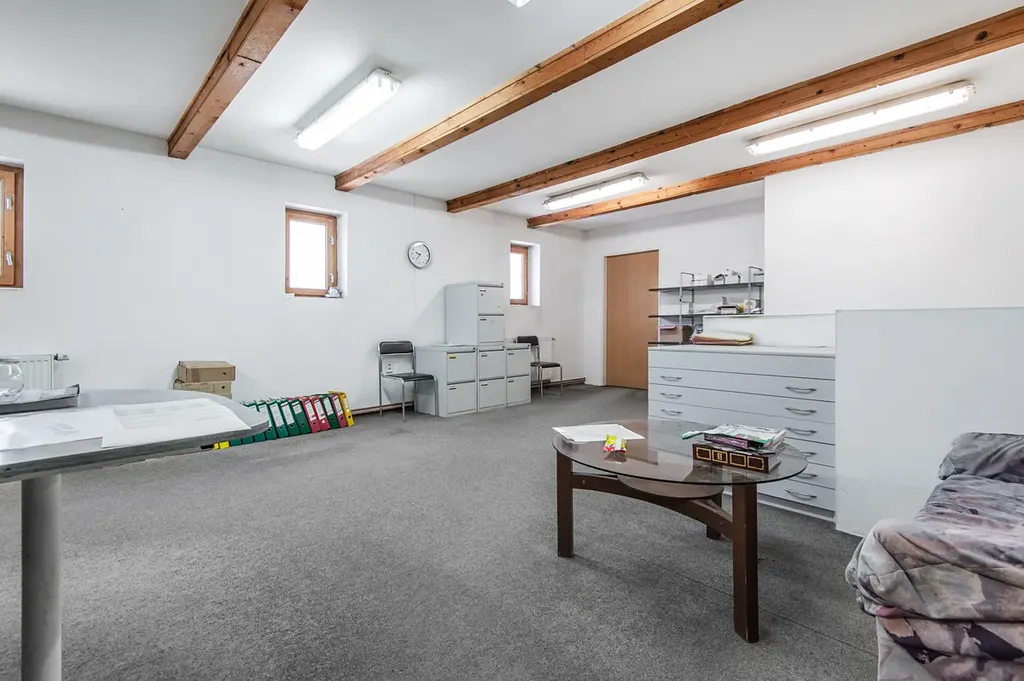 V přízemí budovy se nachází výrobní i skladové prostory. V patře je vstupní místnost s pultem, kancelářské zázemí, další skladové prostory, sociální zázemí pro zaměstnance a malý byt se zázemím a s vlastním přístupem ze dvora.