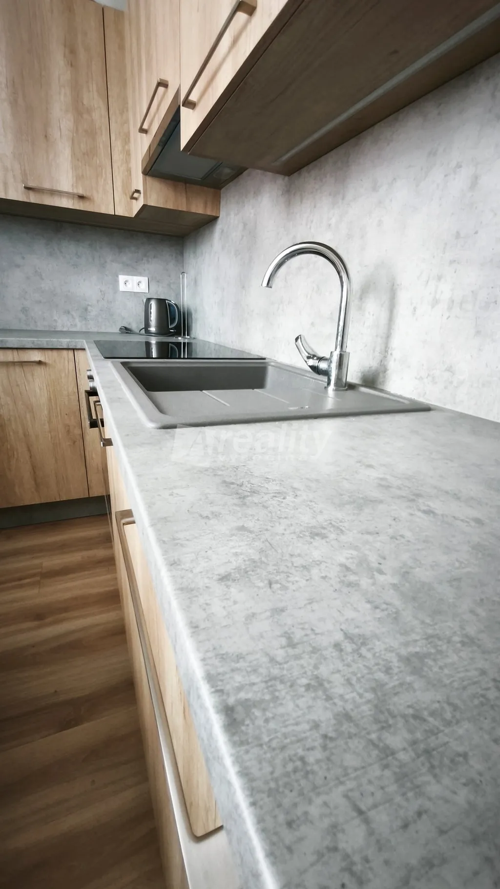 Dispozice: z předsíně (4,9 m2) je po pravé straně samostatný vstup na WC (0,8 m2), dále do koupelny se sprchovým koutem (2,1 m2), do kuchyně s novou kuchyňskou linkou včetně vestavěné mikrovlnné trouby, sklokeramické varné desky a elektrické trouby, pračky (8 m2), dále do prostorného obývacího pokoje propojeného s jídelní částí (22,4 m2) se vstupem na lodžii (4,5 m2) s orientací na západ, obývací pokoj je průchozí do ložnice (12 m2) s orientací na východ. V bytovém domě je možnost využití kolárny a úklid společných prostor je zajištěný přes firmu - v ceně záloh na energie.