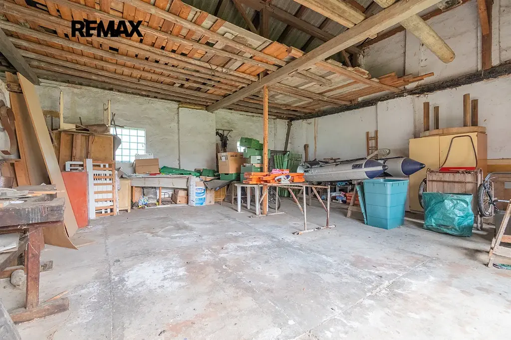 Součástí nemovitosti je uzavřený dvůr s pohodlným vjezdem z komunikace, zděná stodola, zděná garáž, hospodářská budova s půdními prostory a dřevěná stodola, které poskytují široké možnosti využití, například pro dílnu, skladování nebo podnikání.