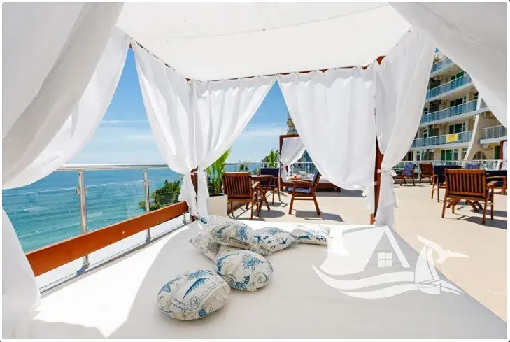 Komplex, ve kterém se apartmán nachází, poskytuje široké zázemí pro pohodlí a relaxaci. Dva venkovní bazény, fitness, herna, konferenční místnost, dětské hřiště a klidové zóny s lehátky a slunečníky. Před domem je parkoviště a samozřejmostí je výtah. Pláž je doslova před domem – na jemném písku a s vodními atrakcemi pro děti.