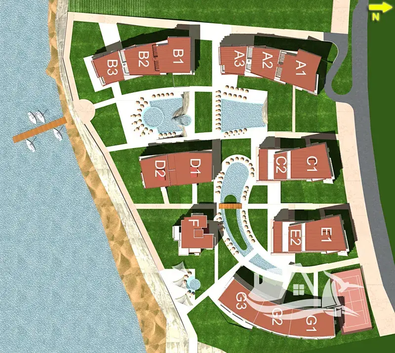 Poloha komplexu: první linie u moře