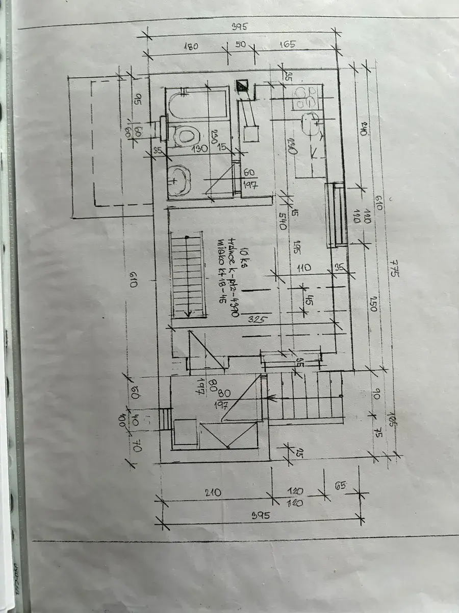 • Dispozice: Přízemí (obývák, kuchyně, koupelna s vanou a WC, chodba) + podkroví (3 pokoje).